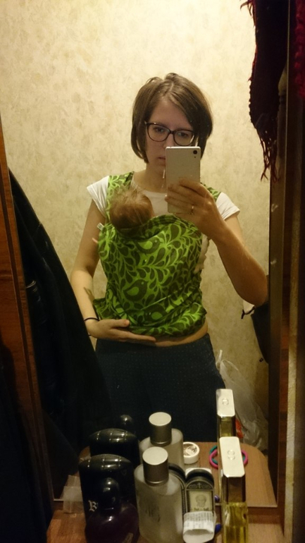 Май-слингВсем привет! Моей крохе 1,5 месяца, и я отважилась попробовать замотать ее в май. Скажите пожалуйста, какие нюансы намотки я упустила? Детка сидит с ножками в позе лягушки, но еще не разведенными, как рекомендуют