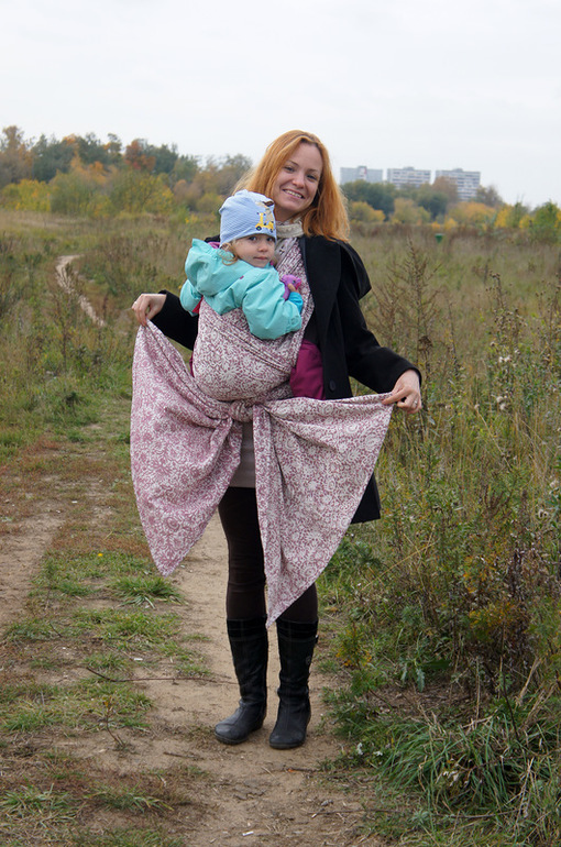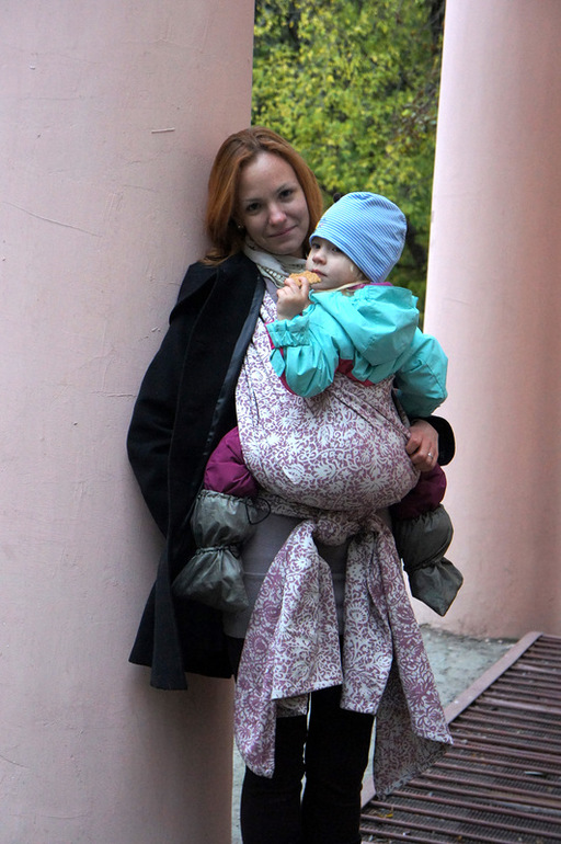...Мне очень важна цепкость шарфа, т.к. трехслойные намотки я не люблю и пользуюсь ими крайне редко. Предпочитаю Простой Крест за то что он позволяет быстро посадить и вытащить ребенка и мне в нем комфортнее чем в КНК носить долго. Этот шарф отлично выдержал две трёхчасовые прогулки и прыгающую двухлетку: намотка не уползала и не требовала корректировок, что перестало получатся с Ошехлопком, (хотя в КНК он ведет себя очень хорошо:)