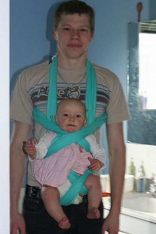 Я даже не буду комментировать намотку... Мне просто интересно, зачем покупать слинг-шарф, чтобы потом использовать его в качестве веревки????