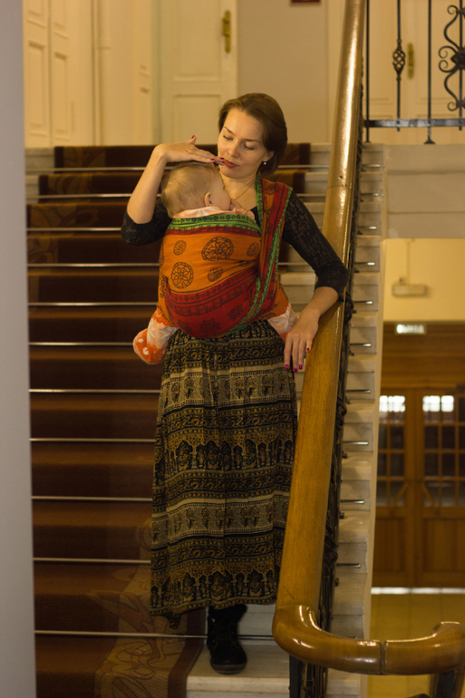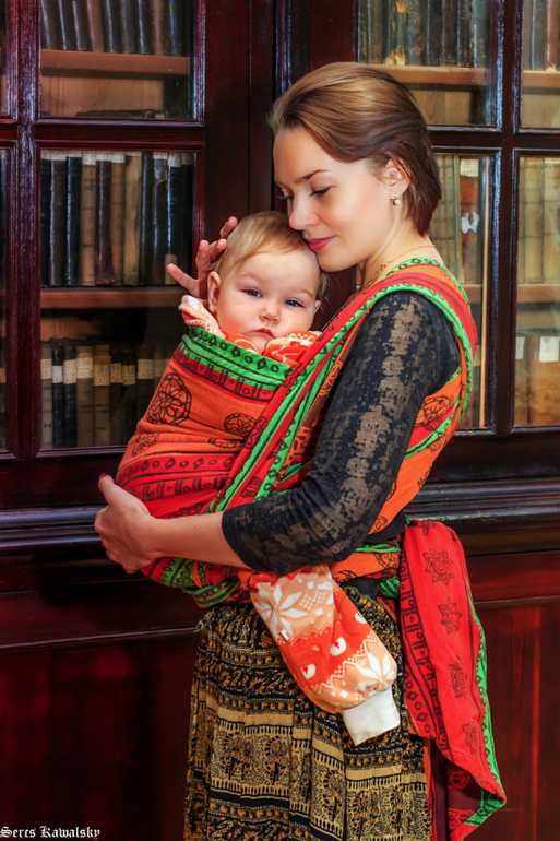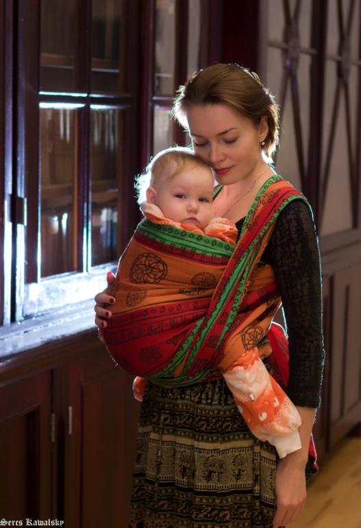 Весть о том, что ко мне на тест-драйв едет красно-зеленый Ethnic RedGreen я приняла с восторгом. Что может быть лучше - яркие краски осени, золотые, багряные листья, прозрачный воздух, стильные этно-мотивы слинга и… моя коронная двойная намотка, в которой с уютом будут сидеть улыбчивые малышки.
