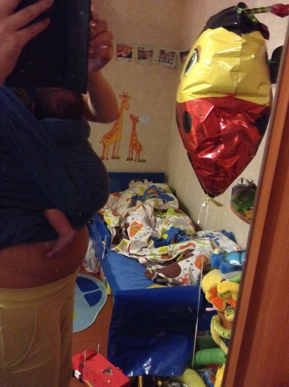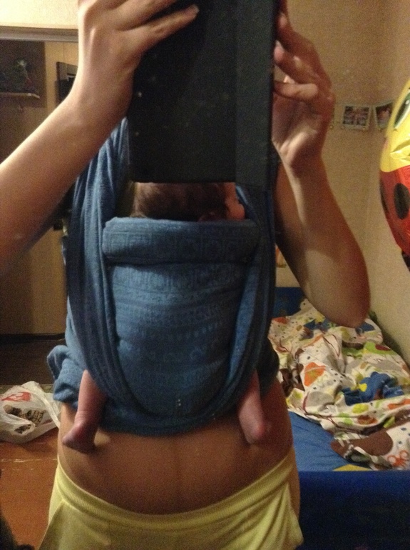 Я счастлива!!!!! :) Наконец-то у меня получилось!!!! Но все равно нада наверное потуже затянуть...чтоб на 5+ было))))Примотала его и он опять кстати уснул! Круто! Я боялась что орать будет в нем....