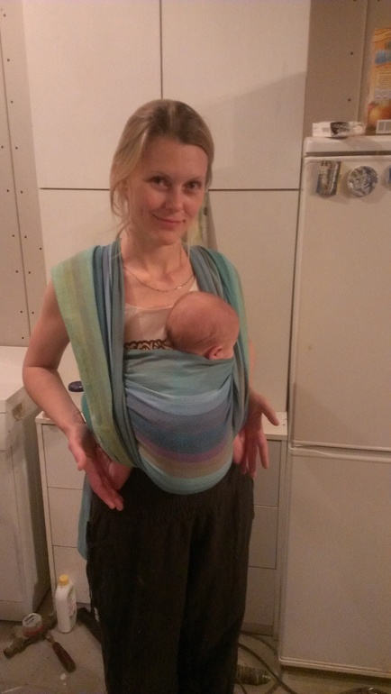 Оцените, правильно ли мы намотали КНК? В этот раз мы наконец-то согласились побыть в слинге, и даже поспали полчаса. Меня беспокоит, что на ножках остаются следы от складок слинга, хотя я и старалась равномерно расправить складки. Всем заранее большое спасибо!