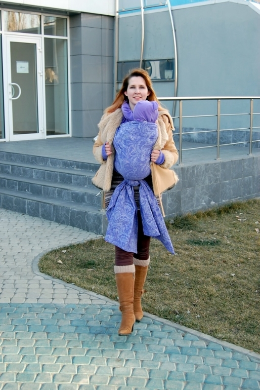 На мой взгляд, шарф - редкий зверь, нигде мне ранее не встречался и попал ко мне по случайному обмену. Размера 5 мне не всегда хватает, поэтому чаще использую его в намотке рюкзак или кенгуру, как на фото.
