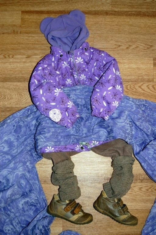Весь образ был дополнен вязаными бежевыми и коричневыми гетрами, лиловыми митенками дял меня и коричневыми варежками для Агаты - нашими любимыми для прогулок теплыми вещицами, и комплектом лиловых флисовых манишек Чук и Гек.