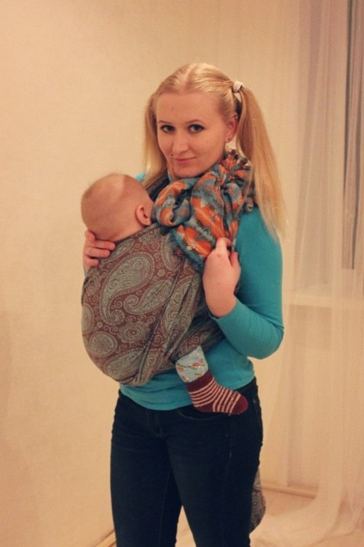 Слинг-шарфЯ относительно начинающая слингомама. В рамках слингомарафона предоставил мне потестить шарфик Paisley Brownie. Моему малышу полгода, вес 8,5 кг.