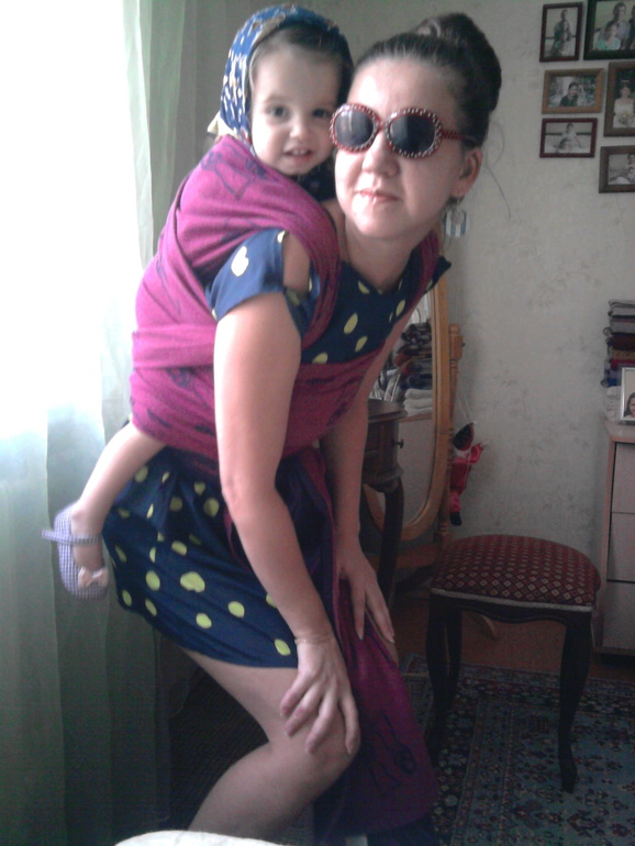 Для своего образа я использовала модные тенденции 60-х: косынка, шелковое мини платье в горох, очки с круглыми линзами в яркой оправе. На дочке: платье "А" силуэта (которое в намотке не видно), косынка.