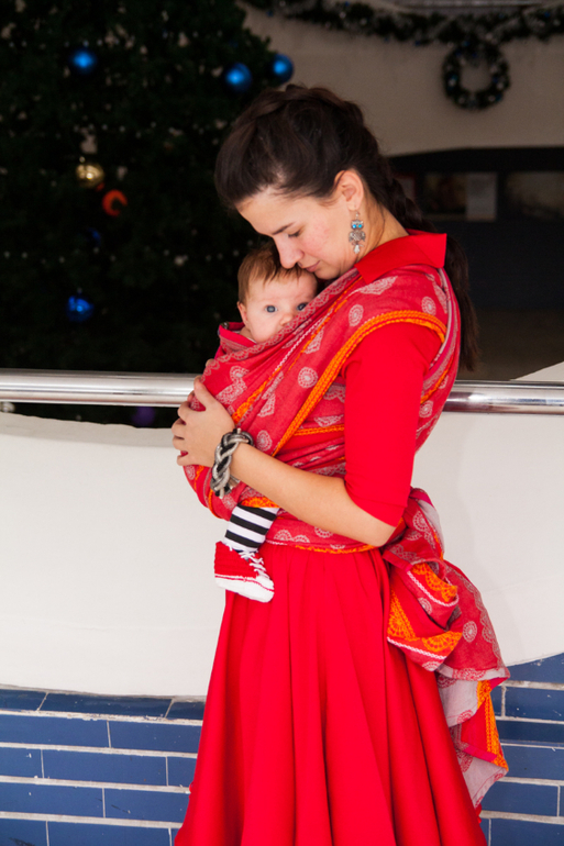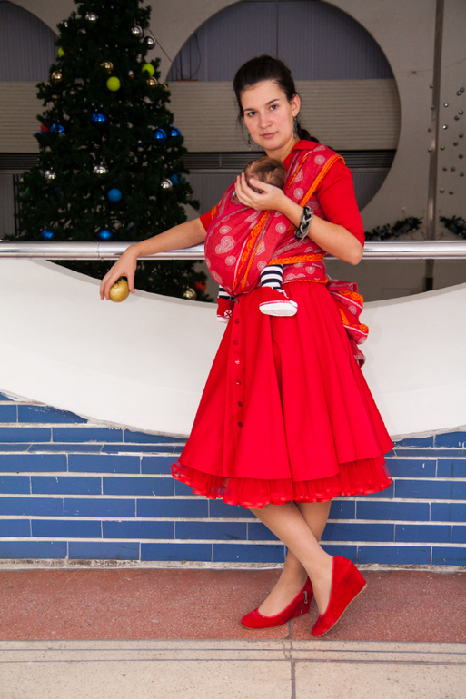 На мне сшитое на заказ несколько лет назад платье с пышным подъюбником из фатина, а Марья щеголяет в связанных мною в прошлом декабре на елку конверсах. У этого есть свой волшебный смысл: кеды вязались с запросом к мирозданию о малыше в наступающем 2014 году, в конце января я узнала о беременности и вот оно, мое новогоднее желание во плоти!