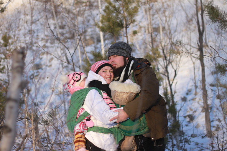 На папе слинг шарф оша каледония брейс. Этот шарф заслуживает отдельного поста и я обязательно напишу о нем! Изначально я хотела чтоб в конкурсе участвовал папочка и шарф каледония, но из за холода, я не решилась раздеть малышку, а в зимнем комбинезоне фотографии получились не очень, поэтому выбрала другой шарф)))