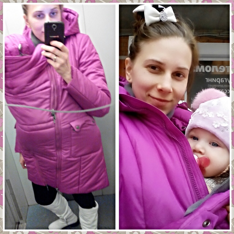 Куртка сшита хорошо, тепло очень и маме и малышу))))Непривычно просто новой системой))))) первый раз оделись так)))