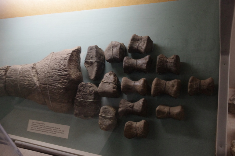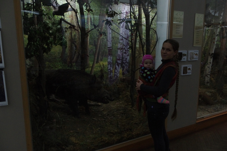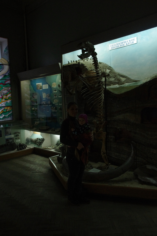 со вспышкой не разрешили фотографироваться, вот стоит мы с Мирой у бивня мамонта)