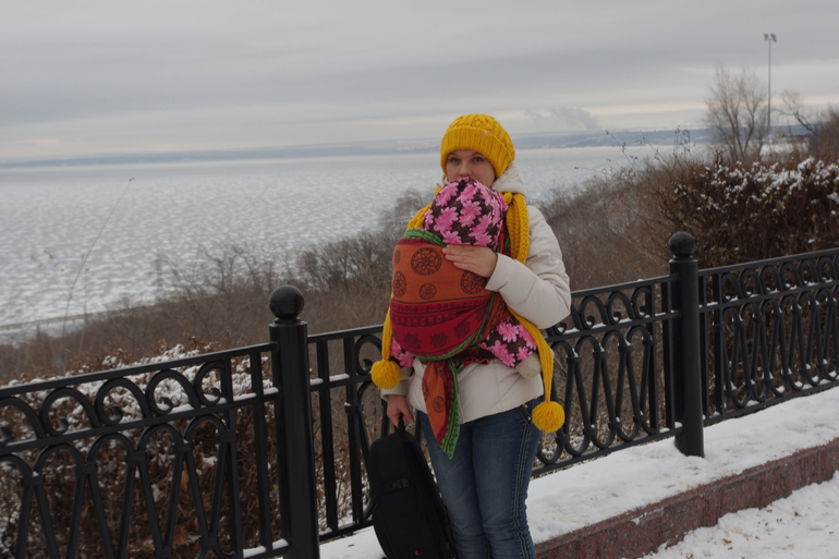 слинг уже намотали без куртки, было удобно, что руки не заняты и я фотографировала.