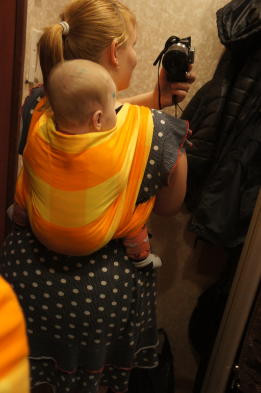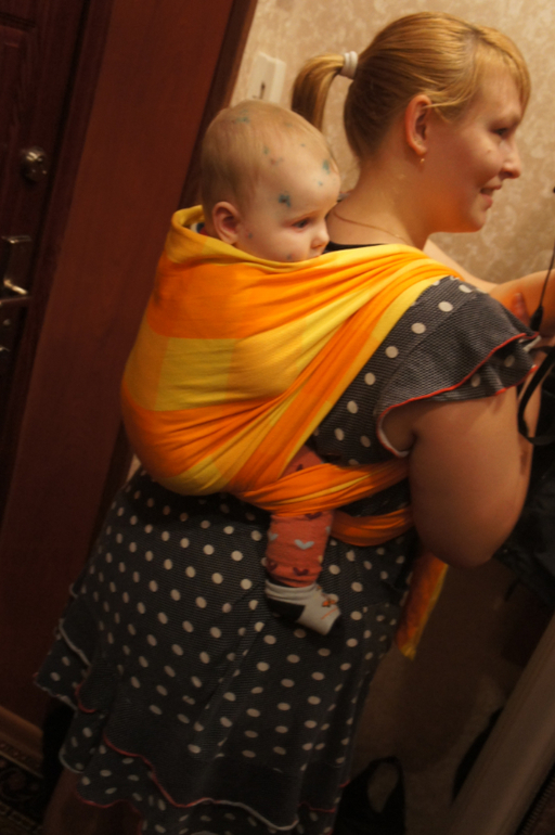 Наклонились вперед, заправили глубоко между собой и малышом всю нижнюю треть от коленки до коленки, распрямились, подтянули вверх малыша — вот так