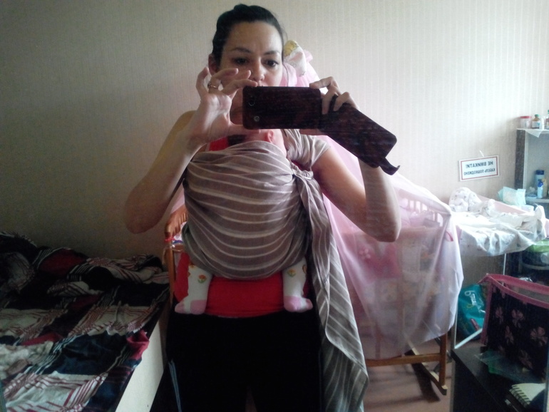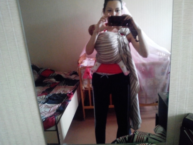 Вертикальное положение мне больше нравится. Все складки по спинке малыша стоит заводить под коленки.В колыбели малыш к Вам животом, а должен быть полубоком. В вертикальном положении нужен глубокий подтянутый карман, тогда малыш не сможет ножками его разболтать.