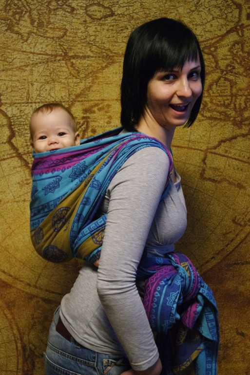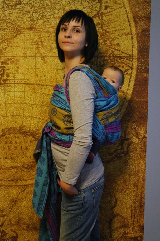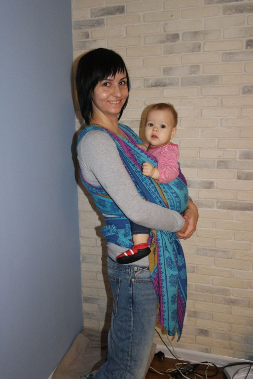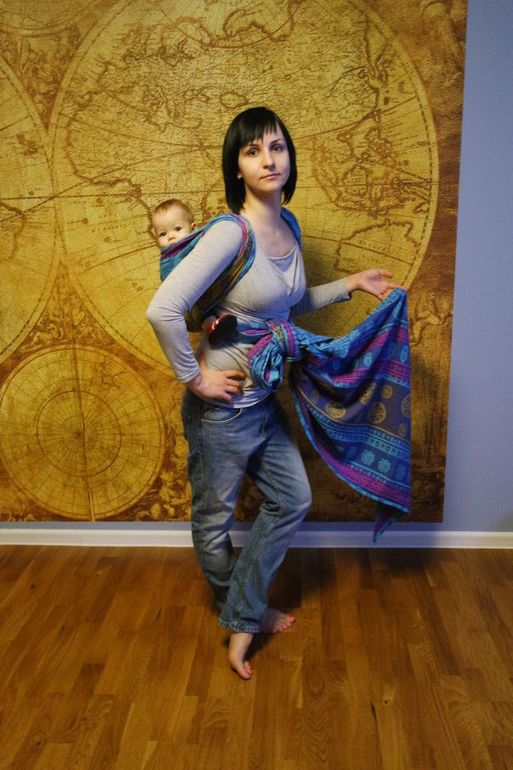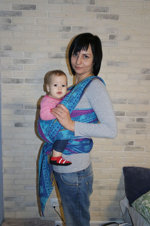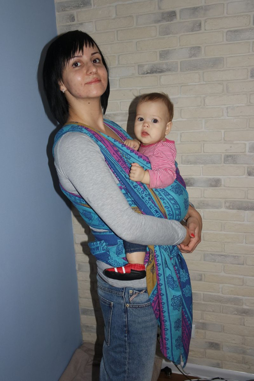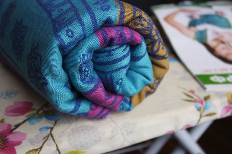 Отдельно хотелось бы сказать об инструкции: очень удобная, я в свое время именно по ней училась первым намоткам. Но вот сумочка пластиковая до меня не дожила: приехала на тест-драйв в плачевном состоянии. Было бы здорово, если бы призводитель подумал над текстильной упаковкой: не обязательно из кусочков слингов, но тряпичная сумочка сохранится дольше и будет удобнее носить его с собой.