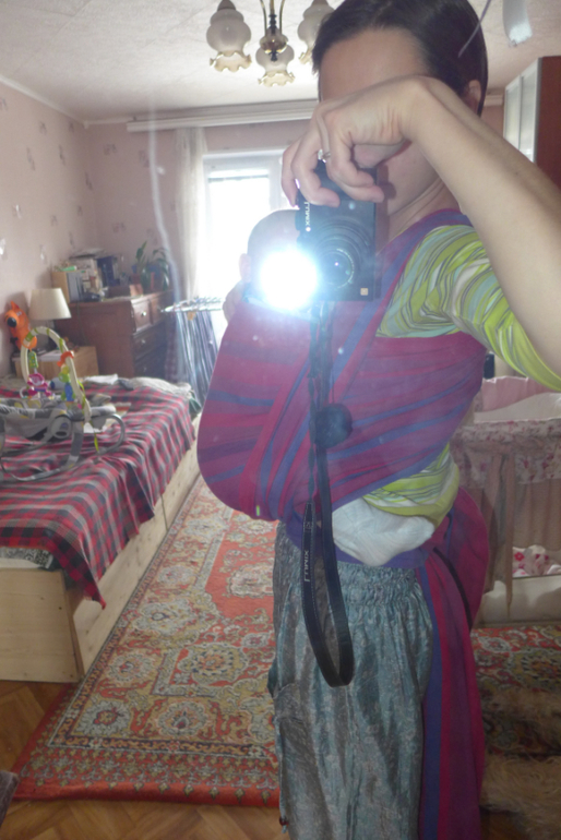 Меня зову Ольга, дочку - Маша. Ей 4 месяца, через 20 дней будет 5. Весит она 6300 (с некоторыми граммами). В первые месяцы пользовались трикотажным шарфом. Но уже с третьего месяца дочка начала в нём выгибаться. Недавно приобрели Гирасол 4,6 м. Он мне очень нравится. И я мечтаю стать слингомамой. Но не уверена, что всё получается. Приматываться пробовали с дочкой 3 раза. Первый она не выдержала и 10 минут, сразу её освободила, как начала капризничать. Следующие 2 раза она позволила мне погладить 3 рубашки мужу и несколько своих вещей.