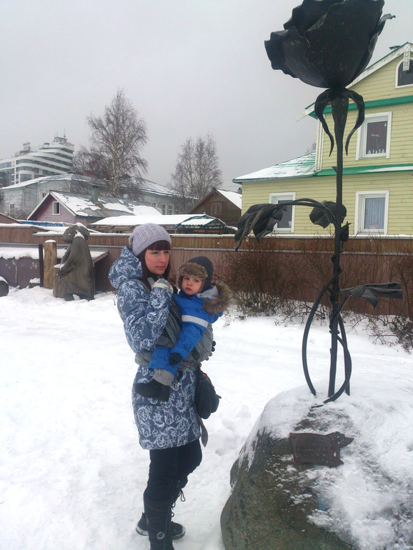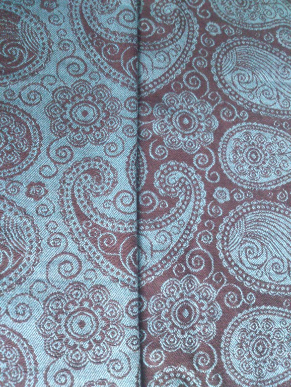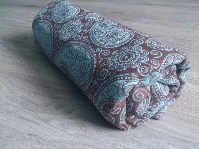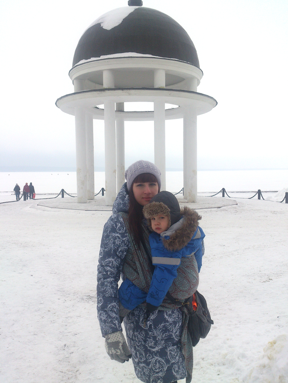 Фотографировались мы на улице, но всю прелесть шарфа я вкусила дома, намотав ребенка за спину на время уборки,хех. С двойным ребозо я дружу не во всех шарфах, у меня намотка выходит неплохо только с пластичными, послушными шарфами. Вот в пейсли намотка удалась - попа просадилась, верхний борт хорошо подтянулся.