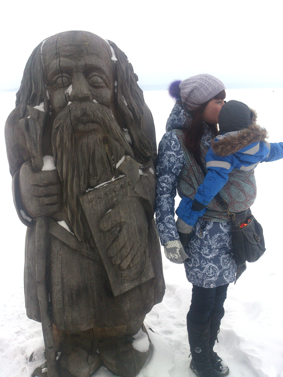 Ну и наши фото с главной достопримечательности города Петрозаводска (Республика Карелия) - с холодной ветреной набережной, полной скульптурным разнообразием: