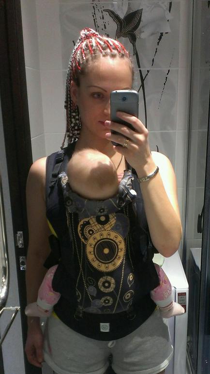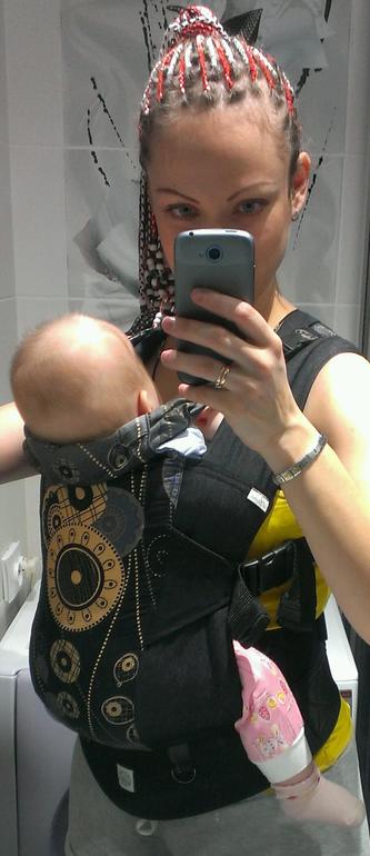 Стоит ли говорить, что Яночка сразу же была помещена в эту прелесть! И тут самое интересное! если для меня раньше было большой проблемой хорошо просадить попку в рюкзаках, потому что выкройки под "бразильские" попки не подходили, то в алое наша несравненная точка сама просела и уютно угнездилась в кармашке! Оооо! Это воссторг! Я могу не переживать о нагрузке на позвоночник!
