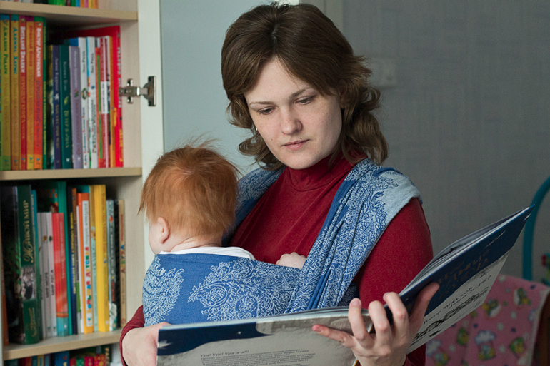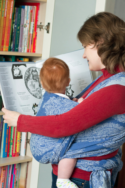 Резиновости и баунса я в этом шарфе не нащупала. Но он очень обнимательный. Обволакивает тебя при намотке и за счет этого очень легко мотается. Отлично тянется! Подтянуть намотку не составляет никакого труда. За счет паттерна довольно цепкий. Так что, да, пожалуй, новичку учится на нем будет довольно комфортно. Мне в 100% хлопке очень жарко. Наверное моя личная особенность, но в моей стопке больше его не осталось. Намотались мы и решили почитать: