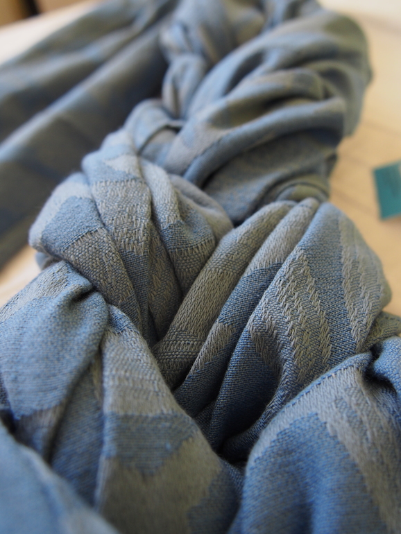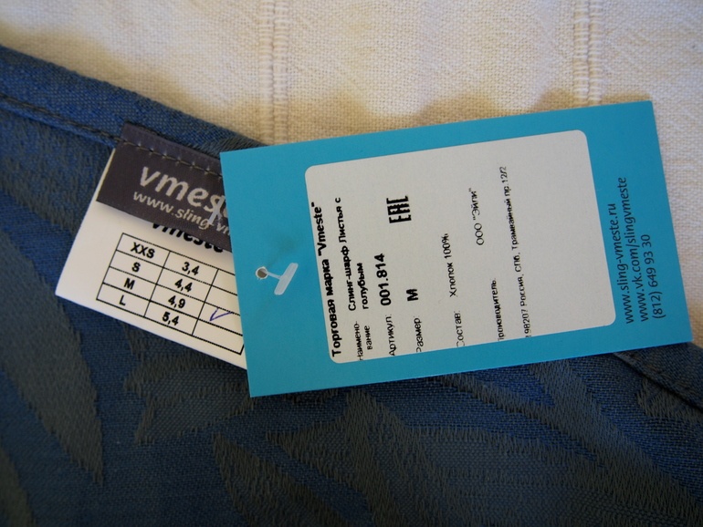 Замечу, что слинг, надетый в первый раз без стирки, плетения, отпаривания и т.д., и он же, но через неделю после намоток и указанных манипуляций с ним, в носке ведут себя совсем по-разному, он становится мягче, еще приятнее. Изначально шарфик мотается жестко и устают плечи. В целом же шарфик очень цепкий, держучий, крепкий, добротный, тяжеловозный. Будет хорош как для младенчика, так и для крупного тодлера.