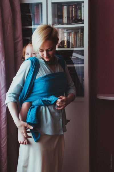 Что касается ТТХ - мои двойняшки весят примерно по 14 кг каждая. Шарф ко мне попал уже после нескольких тестов, довольно мягким и пластичным. Мотается легко, не очень легко подтягивается (что плюс для тех, кто только начинает осваивать процесс), несет уверенно. 14 кг долго, правда, не поносишь, но вот для деток с младенчества и килограмм до 10 - будет хорош. Для тоддлеров тоже будет неплох, но в коротыше и на перебежки от дома до площадки/моря/речки/парка."