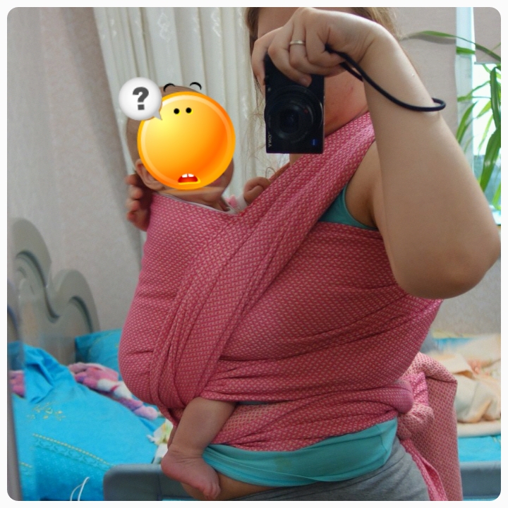 Ре не сильно радуется слингу, постоянно хочет вывернуться, развернуться в бок, выглянуть и посмотреть, что вокруг происходит. из-за этого намотка какая-то нессиметричная. Посмотрите, что не так и как исправить. Спасибо.