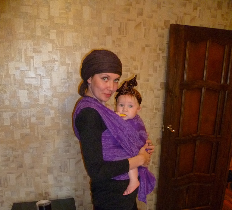 Спасибо тебе, дорогой Шарфик, за твою мягкость, нежность, красоту. С тобой, милый Шарфик, я поняла, что идеальная (ну, в моем понятии идеальная) намотка очень проста, а то я уже успела убедится, что мои руки никогда не научатся красиво мотать дочу) Впервые с тобой, пригожий Шарфик, я пользовалась моделью с прямыми концами, а не скошенными, как это в нашей Эстетике. Возможно, как раз это и и играет роль такой мастерской намотки. Ты, прелестный Шарфик Виола, прекрасно ложишься, скользишь, и настолько хорошо облегаешь 8 кг моей крохи, что я (без шуток) иногда вообще ее не чувствовала, и намного дольше не уставала. Для меня, дорогой Шарфик Виола, ты оказался безупречным.Я не нашла в тебе ни единого недостатка. Мне даже немножко неудобно перед нашей родной Эстетикой так тебя хвалить). А о твоей красоте можно говорить и говорить, и спасибо за это итальянским мастерицам ))