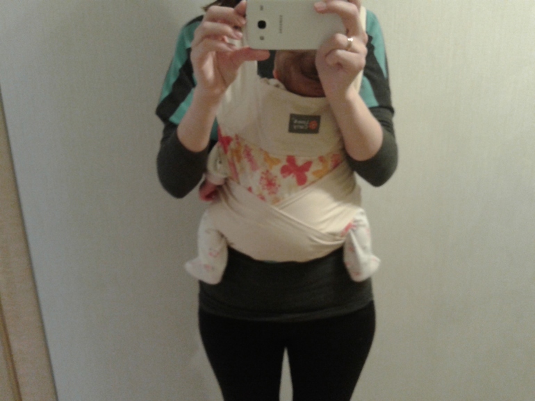 Желательно сменить малышке ползунки на более эластичную одежку внизу: колкотки или леггинсы +носочки. Чтобы притянуть верхнюю часть спинки, расправьте плечевые лямки дальше от шеи. Касательно скругленности спинки, перед тем, как поднять спинку слинга на спину малышки, постарайтесь придать уже придать ей правильное положение в слинге, как бы подкручивая попку. Хорошо и понятно об этом рассказывают в видео Слингопарка смотреть можно с пятой минуты. Тут показан слинг-шарф, но в май-слинге действуют такие же принципы в этом моменте