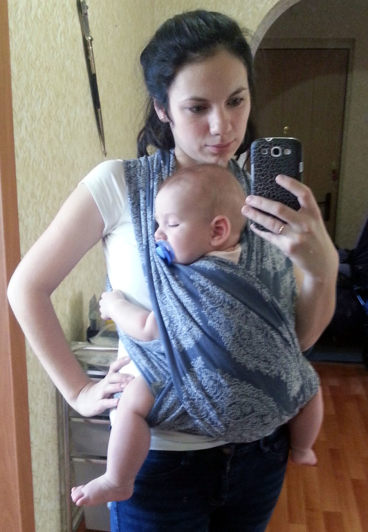 Ребенка шарфик держит хорошо, мотаться легко и спина не устает, но мы правда гуляли в нем не долго. Несколько раз выходили в магазин и пару раз прогуляться. В основном носили дома. Для дома тоже идеальный вариант, не жаркий, ткань приятная и ласковая, ребенка можно даже не одевать, только подгузник и маечка.