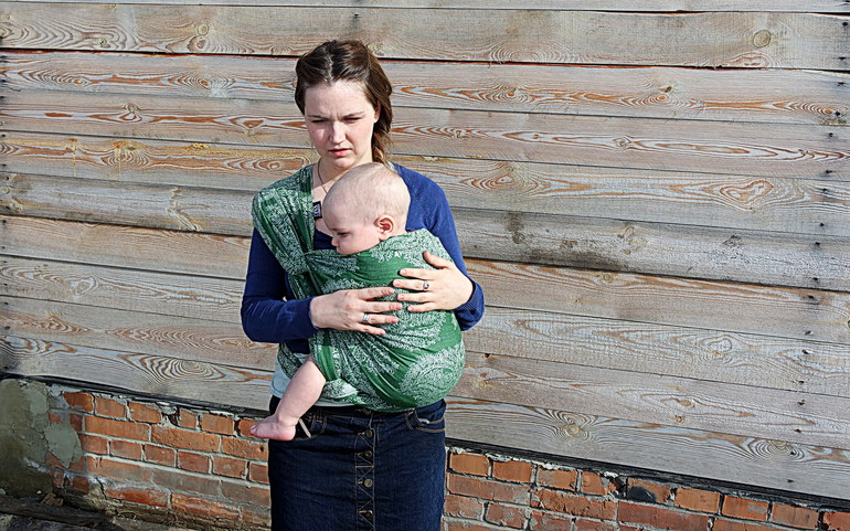 Я немного потаскала своего человека годовалого, который весит около 11 кг. Для таких деток имеет смысл брать пожалуй только для намотки робин, в которой я и носила - шарф скользкий и эта намотка получается очень быстро и складно. Обычно подросшим деткам она нравится больше КНК, т.к. есть возможность рассматривать мир.