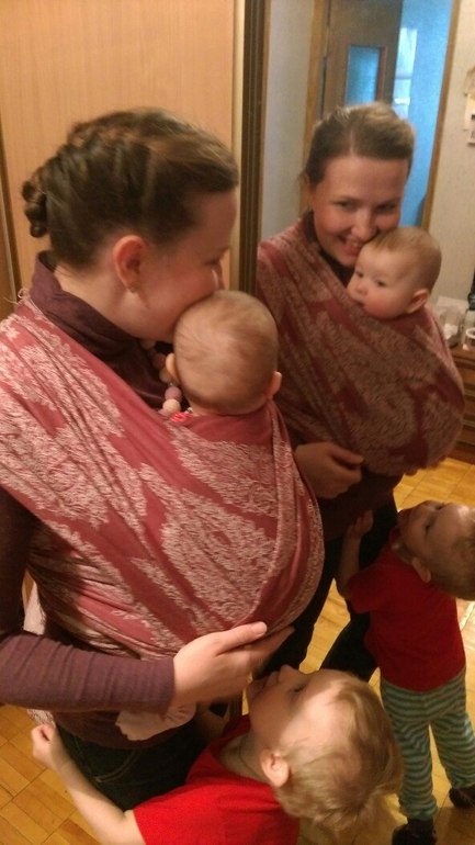 Наш слингоопыт по шарфам продолжается. Не могу сказать как Дива поведет себя с тодлерами ( мой старший бегунок отказался от экзерсисов).