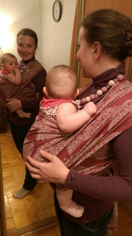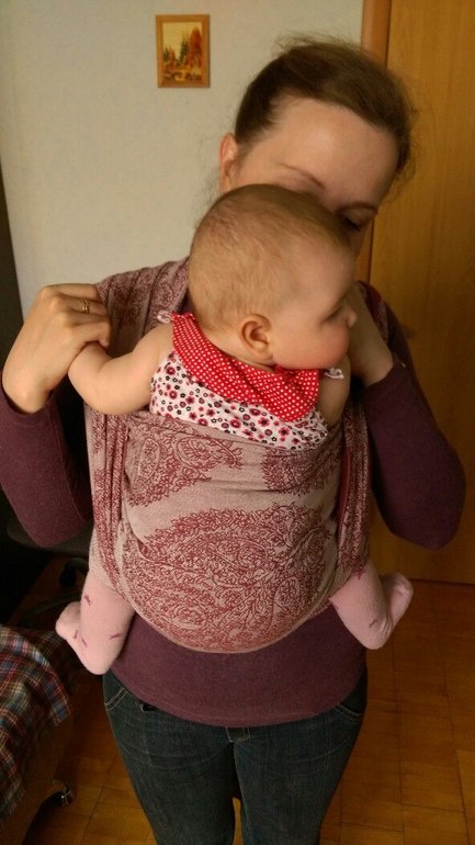 При записи на тест мне рекомендовали именно этот вариант для подросших детишек. А я бы замотала и совсем малыша. После двух стирок слинг стал пухлее, что считаю подходящим для младенчика.