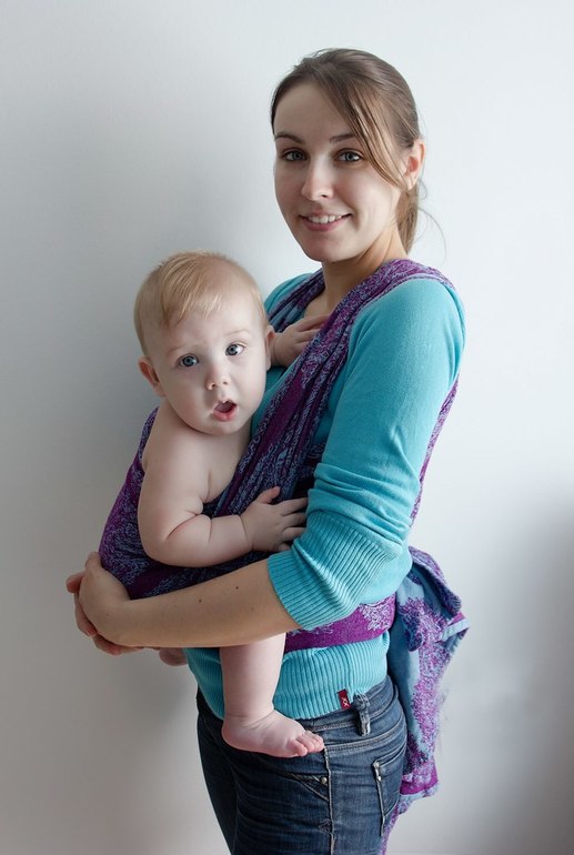 Эссенца немного толще, чем к примеру, Ellevill с бамбуком. Поэтому, думаю, кг до 10 будет нормально. А там уже, как ребенок будет вес набирать. У меня сыночек в год был только 10 с копейками) При таком раскладе получается слинг очень универсальный — хватит до времени, когда малыш уже ходить начнет)