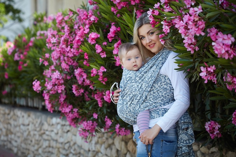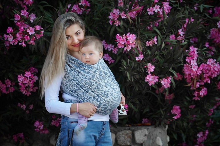 Спасибо за чудесную фотосессию со слинг-шарфом Diva Milano Rose Eclipse со льном и шелком слингомаме Анне и фотографу Ире Авив!