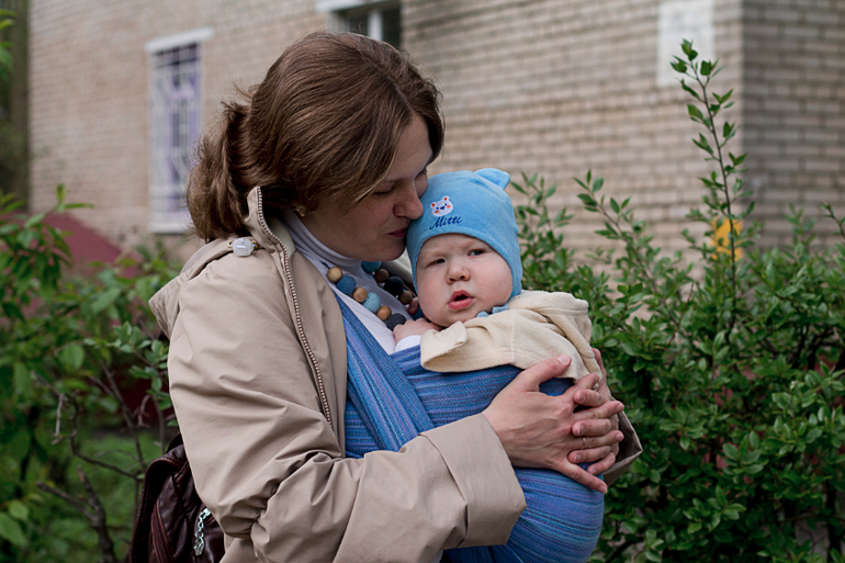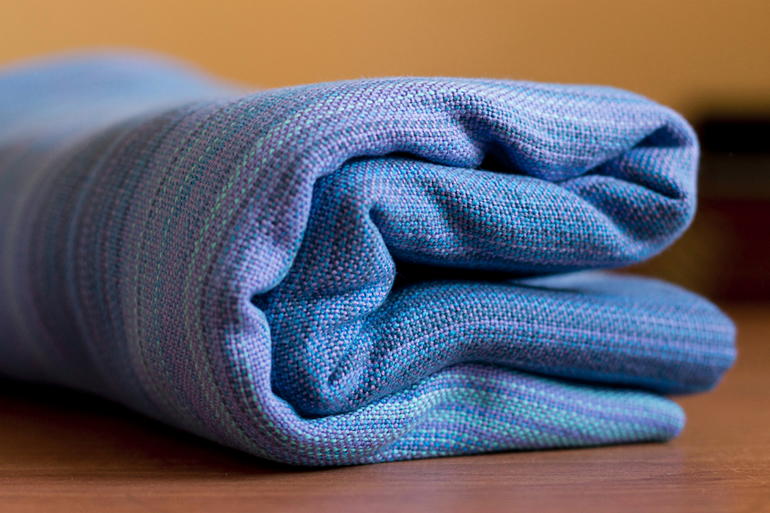 Теперь о шарфе: тонкий, пластичный, легко мотается, хорошо ложится на плечи, продуваем. Мне не показался грузовозным. Как-то мои 10+ кг неслись с трудом. Правда, я предпочитаю однослойные намотки и полотнища не расправляла. И экшен: