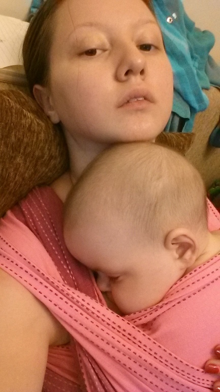 Вам сложно притянуть верх тк малыш высоко,вы задеваете его головой попа должна быть на уровне пупка.