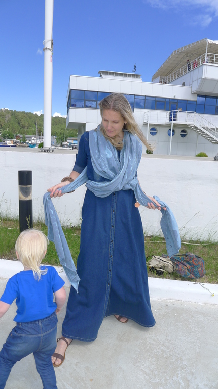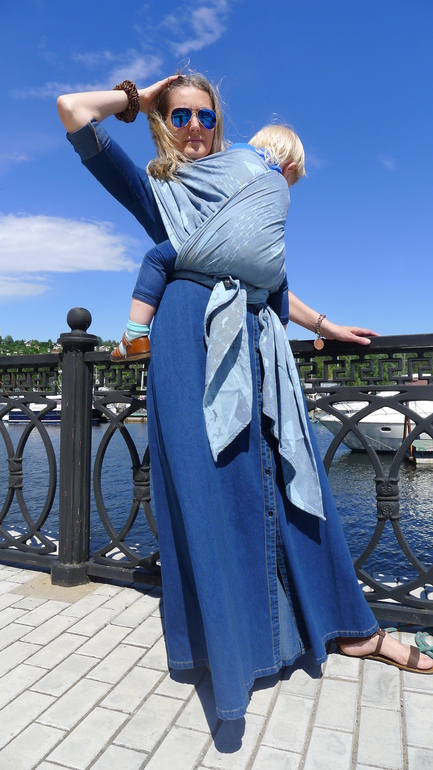 На летний конкурс слингостиля представляем тренд обновлённый джинс. В основе образа любимое платье в пол рубашечного кроя. На малыше джинсы и синяя футболка. Коричневые кожаные сандалии на обоих) И конечно киты! Припыленные джинсовые киты иглулики от ватанаи. Приглашаю под кат.