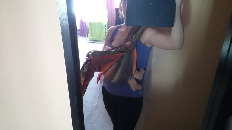 не должен обвисать. Значит, слабо натянута ткань. Голова не должна быть под грудью. Вы всегда должны видеть лицо малыша и контролировать дыхание. Вот здесь есть еще фото интсрукция