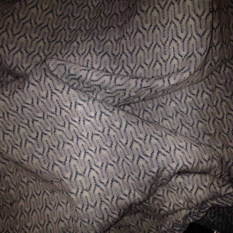 Шарф по текстуре стал более рельефным после стирки. Тонкий, летний вариант. Рыхлый, продуваемый. Мой сын весит 10 кг, намотка не ползет, в плечи не впивается шарф, мягко ложится на плечи. 4ка мотается экономно - на 42 размер с моим сыном вяжется на мне в кнк, завязывается на скосах, правда, уже.