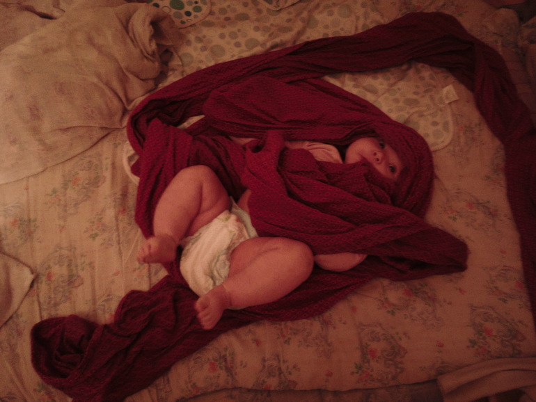Я не засекаю время) Но она если не спит, долго все равно сидеть не станет, так что хочешь не хочешь, а вытащишь) Ну и понятно, что в гостях проще лялю положить на диван/кровать, а не держать в слинге.