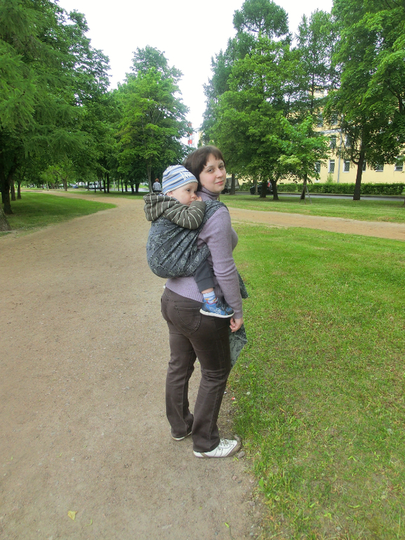 Намотала сегодня рюкзак. Деть решил попрыгать за спиной, чего обычно не делает. Хочу сказать - Оберон выдержал проверку) Один узел спокойно удержал прыгунка, при этом намотка никуда не уехала, попа осталась на месте.