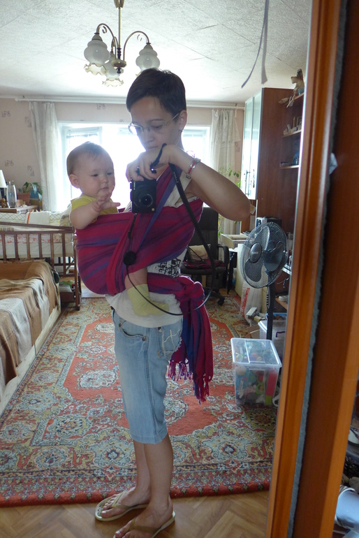 Мотаю слинг, чтобы дойти до молочной кухни буквально в 5 минутах от дома. Вот только не могу понять, нормально ли? То, что ребёнку там хорошо, дочь смотрит по сторонам - вижу по ей самой. Но иногда мне кажется, что сильно косячу. Вот здесь вижу, что ребёнок сильно отстранился - потянулась к фотику, хотя перед выходом контрольно подтягиваю её к себе. В общем, прошу помощи и подсказок.