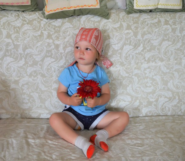 Размер банданы - 0-1 год. Однако очень уж мне хотелось получить полный боекомплект ))) И я взяла, решив, что детей в родне много, кому-нибудь подойдет. Оказалось, что бандана отлично села как на Нику (2,6), так и на Машу (1,8). Означает ли это, что бандана большемерит? А вот и нет!