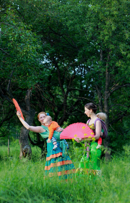Бахрома на юбках, шали, прически, украшенные цветами, - это все подлинное наследие цыганских танцовщиц. Спустя век наряд практически не изменился, а в этом сезоне, и вовсе, стал трендом.Танцевать вместе с малышами нам помогали слинги Diva Essenza Menta ( хорошая рабочая лошадка, обладающая весьма аристократичной внешностью. К слову, вес ребенка в слинге - 14 кг. Шарф мягкий, но держит великолепно, легко ложиться на плечи, не давит. С таким полотном справиться даже начинающая слингомама).