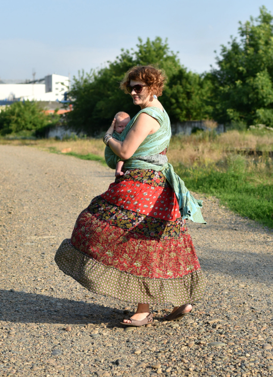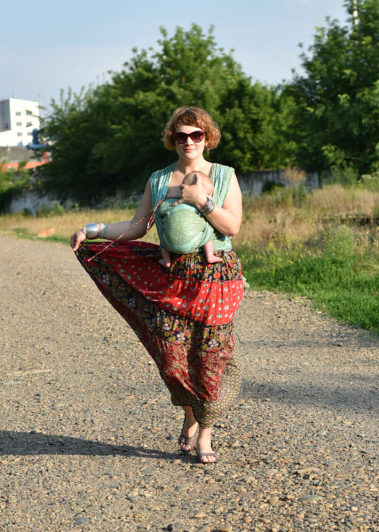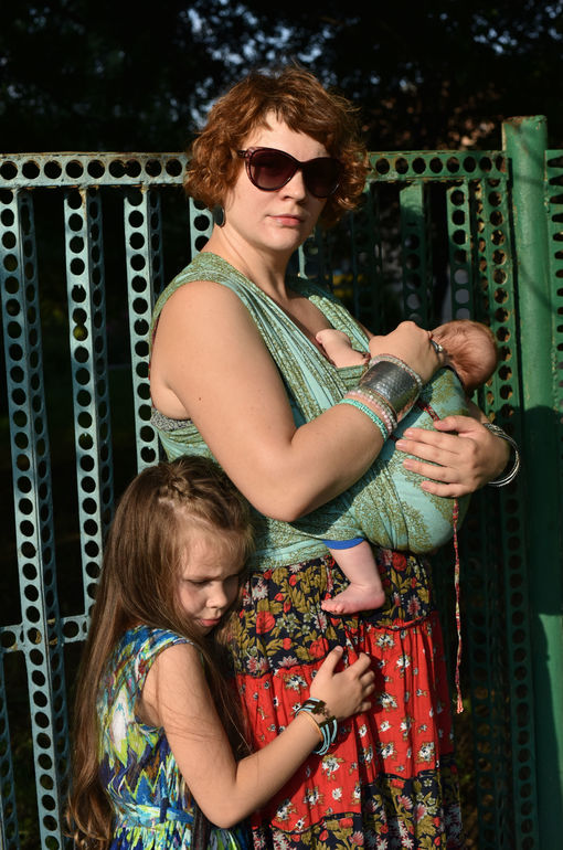 на мне мой любимый летний сарафан с оборками и браслеты. Дочь в шитом мной платье и сшитой по случаю фотосессии сумки из лоскутов. это уже бохо стиль) А на Тимохе наш первый слинг шарф,очень любимый нами Дива Эссенца мента. бамбукохлопок. 100% младенческий слинг! долго мы его выбирали, и таки решились. и ни секунды об этом не пожалели. Нежный,мягкий, после неудачного бюджетного шарфа российского производства, который я размягчала всю беременность, он буквально мотался сам! а цвет! это просто сказка!
