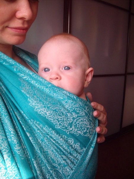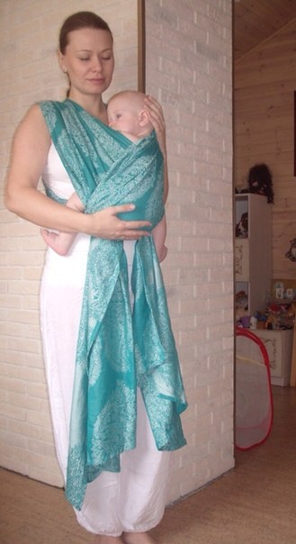 Младшую дочку три года откатала в слингах и вот теперь с сыночком шарфянка накрывает). Бамбук я мотала впервые и сравнить мне не с чем. Но шарфик очень понравился нежностью и относительной легкостью. А цвет вообще предел мечтаний, лично моих, ибо я обожаю зелено-голубую гамму! Цепкость хорошая. Мотается легко. Так как я параноидально аккуратно отношусь не к своим вещам, мотала шарфик только в домашнем режиме. Максимально время носила сыночка в намотке КНК чуть больше часа, малыш все это время спал. После ни спина, ни шея (что важно для меня очень) не стали выказывать мне своего недовольства. Намотка не деформировалась. Думаю, для младенчиков и на лето для не тяжелых деток самое оно. Шарфик мы получили новенький и были первыми, кто с ним пообщался и остались довольны вполне. Смутил лишь один момент: тело и белая майка, а также пальцы рук слегка окрасились после намотки. В отзывах почитала, что после стирки шарфы краситься перестают, но сама на деле не проверяла. Еще раз, огромное спасибо за предоставленную возможность сперва познакомиться со слингом, а уже после принимать решение о его покупке. Успехов вам и всех благ!