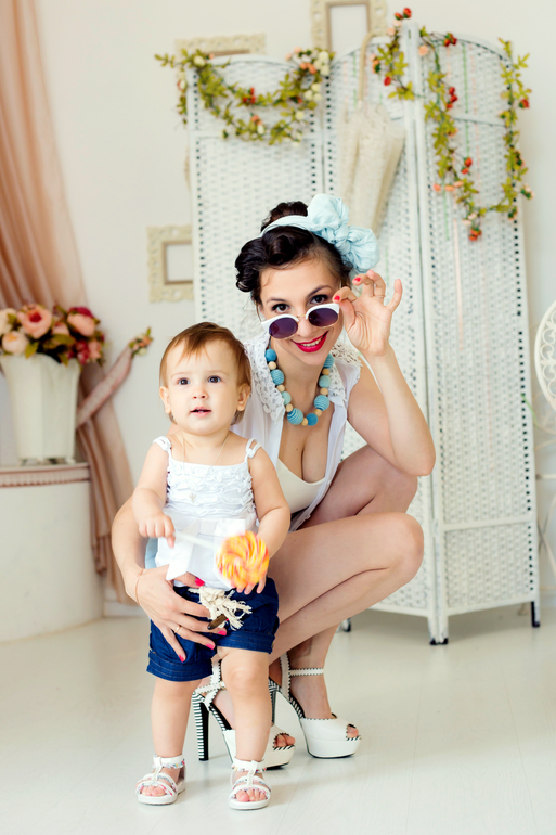 Сразу оговорюсь: на каблуках ребенка не ношу) И в реальной жизни этот образ отлично вижу (позволяла бы погода) с небольшими изменениями: на ноги белые сандалии на плоской подошве, волосы распустить, а шарф намотать в кнк или дв.ребозо, чтоб ткани "лишней" не было) И готов отличный летний вариант))))