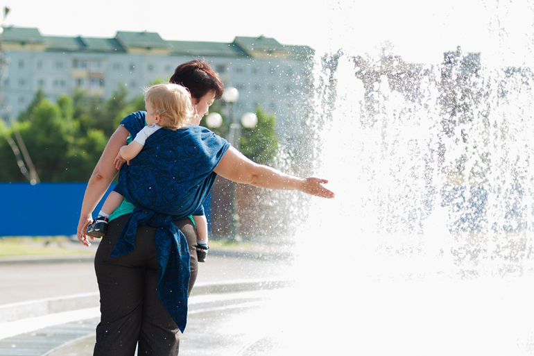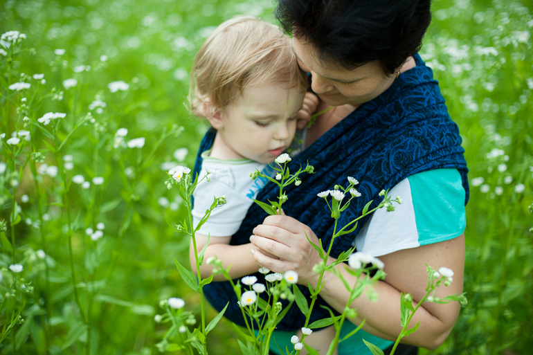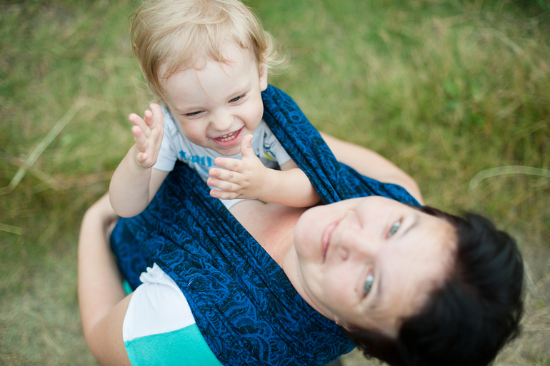 На первый "пощуп" шарф показался мне грубоватым и достаточно жестким. Но в намотке он вполне уютен, обнимает и несееет. В двойном ребозо можно носить 12 прыгающих и вертящихся килограмм часа два совершенно спокойно, лишь бы эти килограммы там усидели )) В КНК с расправленными полотнами этот вес растворяется совершенно. Остается только ощущение мягких объятий. Мотается шарф легко и непринужденно, подтягивается хорошо и при этом совершенно не ускользает обратно.