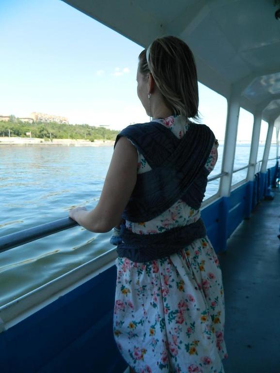 что хочется сказать в итоге....слинг - сказка! уверена, что я себе однозначно его приобрету. могу советовать его как шарфик и на младенчика и на тодлера и однозначно его можно новичку! для лета может быть плотноват...мы не вспотели, т.к. когда я выгуливала шарфик было уже 20 часов вечера и только что прошёл дождь, а подруга выгуливалась на теплоходе....но на просвет шарф очень даже плотненький.