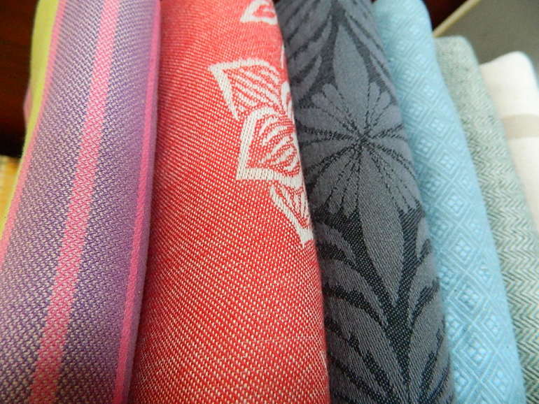 в стопке и в рулончике смотрится довольно объёмным, однако в намотке весь объём куда-то девается... по плечам и в жгутах слинг лежит не создавая грубых складок